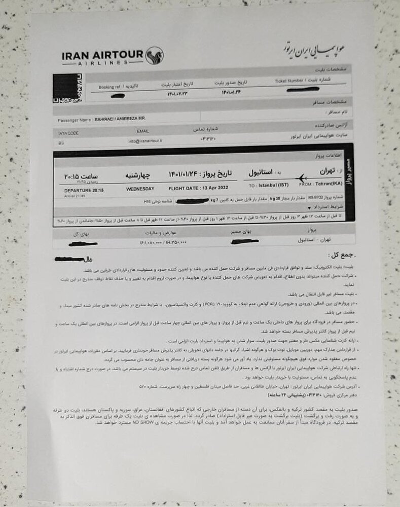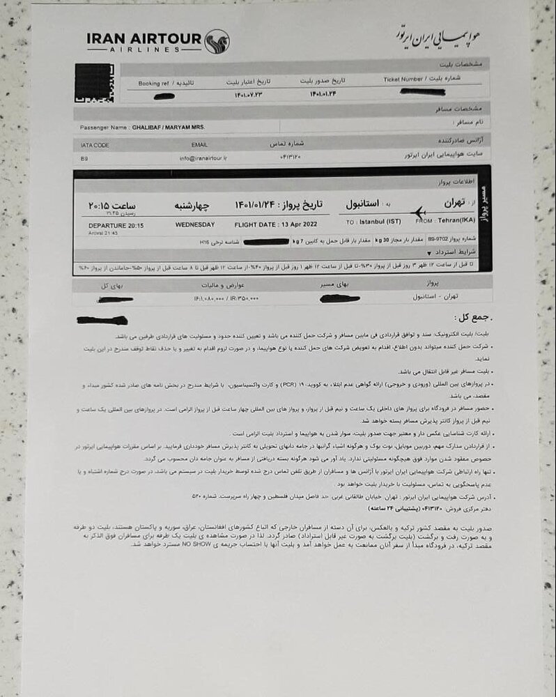 وحید اشتری که از ماجرای سفر خانواده قالیباف به ترکیه برای خرید سیسمونی پرده برداشته بود، در مطلبی جدید از بلیط مستقیم تهران به ترکیه خانواده قالیباف رونمایی کرد.