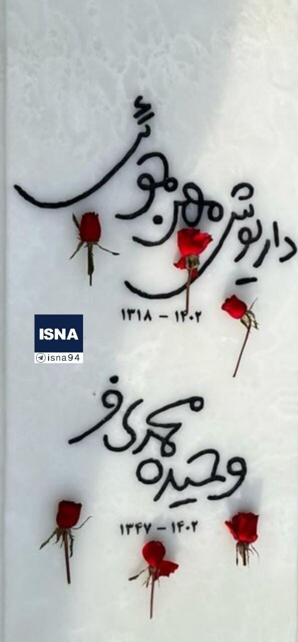 عکس| رونمایی از سنگ قبر داریوش مهرجویی و همسرش با طرحی خاص